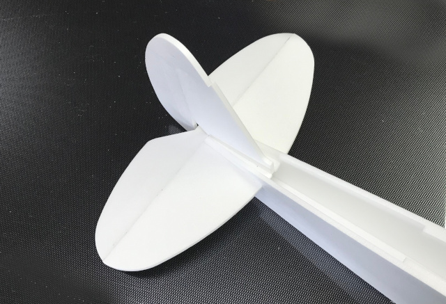 Leitwerke ausrichten und verkleben. Durch diese offene Bauweise wird der Anlenkungseinbau sehr einfach zugänglich.