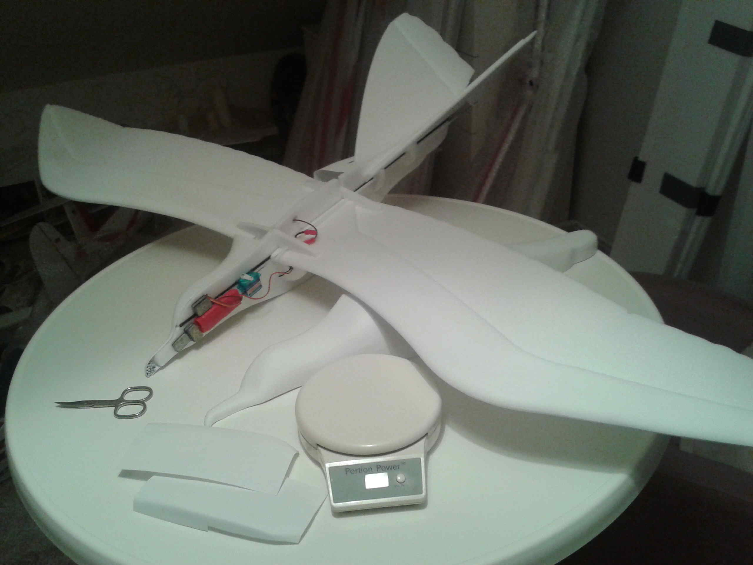 Da ich eine motorlose und leichte Möwe bauen wollte, habe ich die Servos weit nach vorn gezogen und insgesamt ein Gewicht von 280g erreicht. Jürgen F.