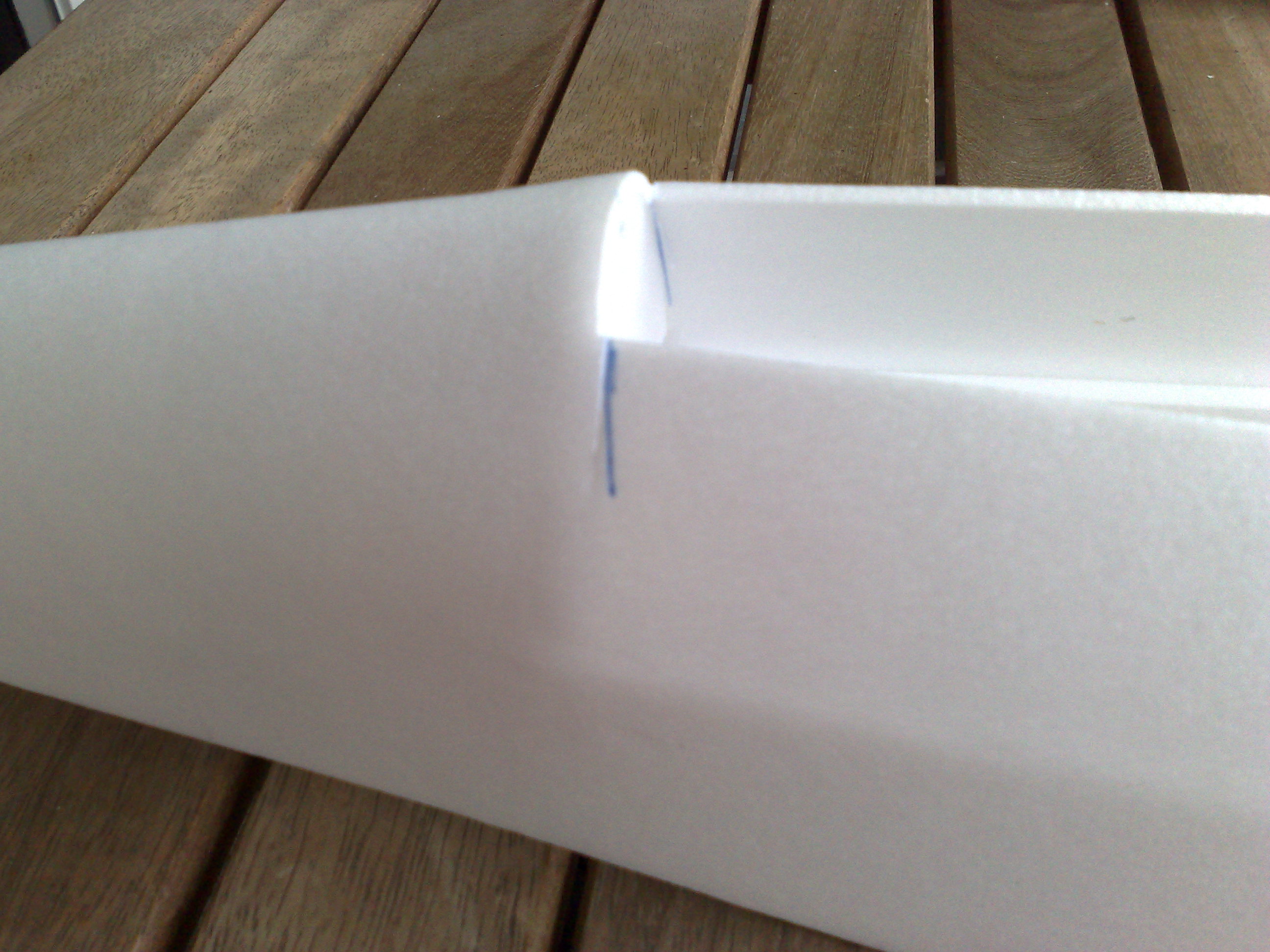 Hier 20mm senkrecht direkt vor dem Spant das Depron aufschneiden.