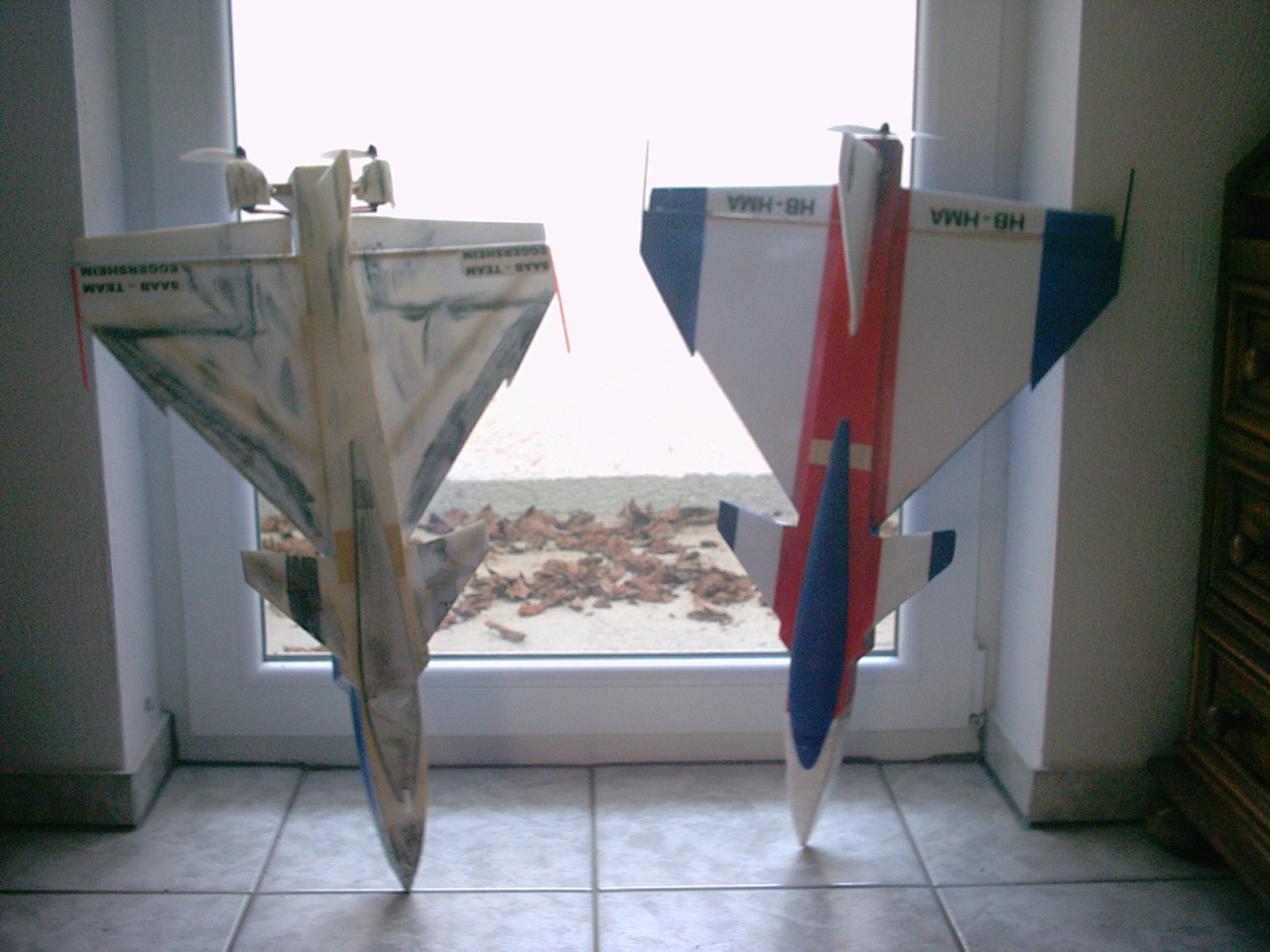 Man achte auf den linken Flieger.Der ist mit 2 x400 Motoren ausgerüstet und fliegt noch stabiler als der Bruder nebenan der mit einem 480 Motor fliegt.