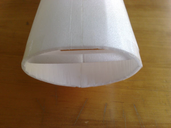 Kopfspant von innen nach vorne drücken. Ev. Kanten des Spantes abschrägen. Der Kopfspant hat eine 2 Markierungen, diese an den Klebenähten ausrichten.