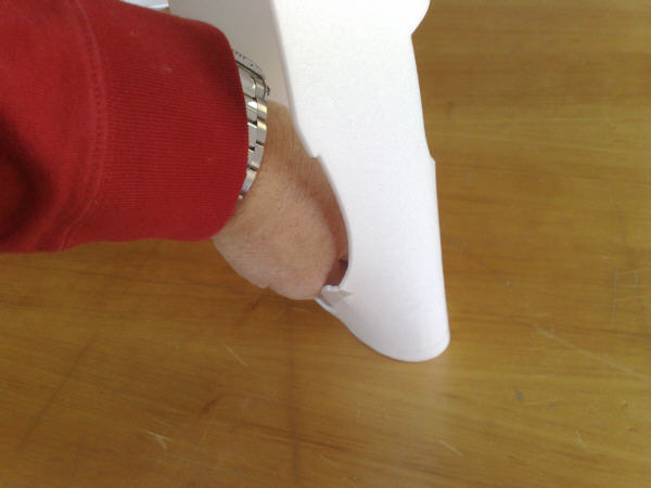 Mit Uhu-Por den Spant auf der Tischplatte nach unten drücken