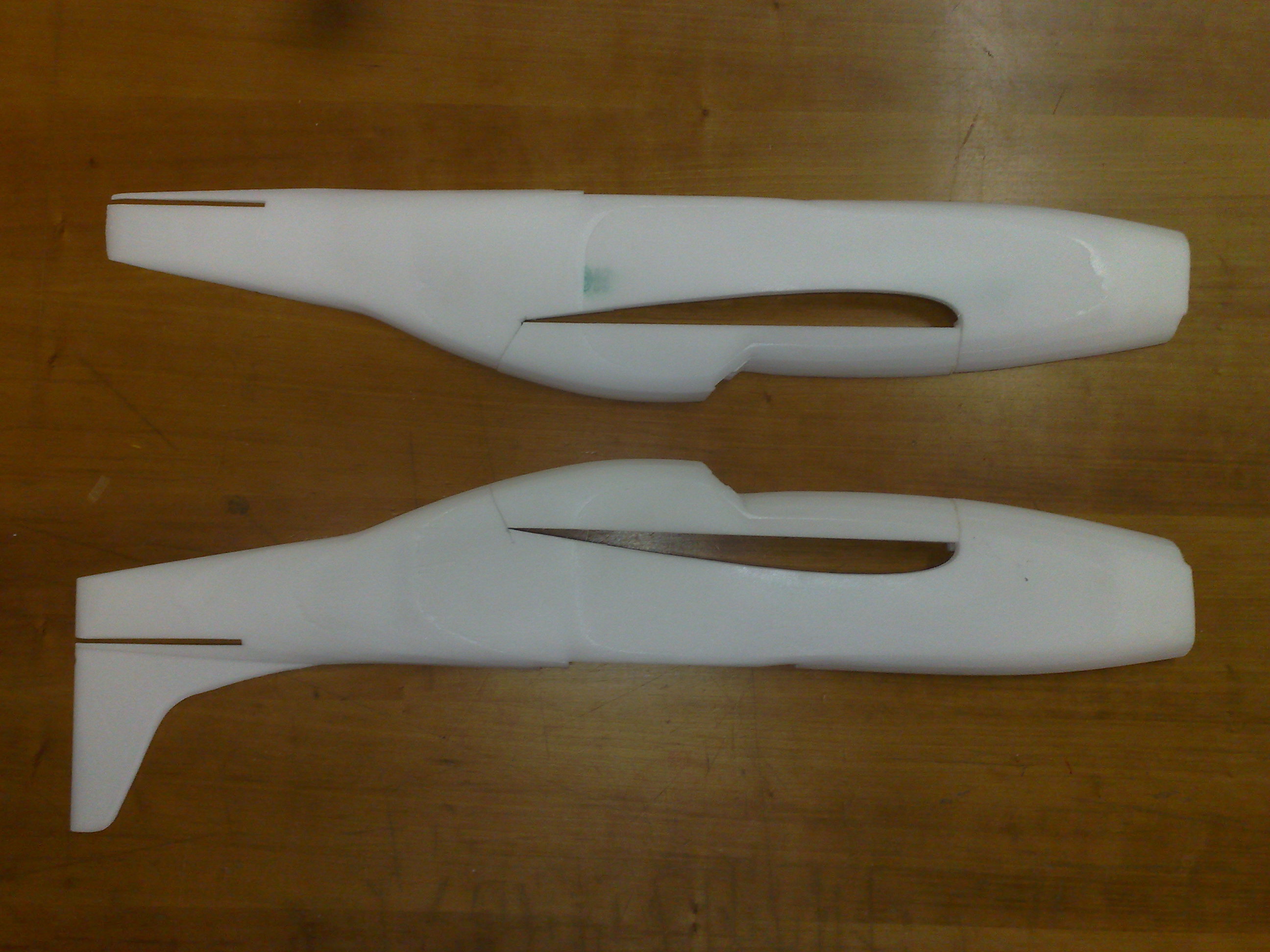 Und passt. Weiter aushöhlen von innen werde ich nicht, die Teile wiegen nur 65gr und sind schön stabil. Arbeitsaufwand bisher: 1,5 Stunden