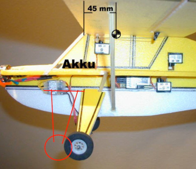 Fahrwerk sehr deutlich vor dem Schwerpunkt= geringere Kopfstandneigung, aber höhere Ausbrechgefahr beim Start